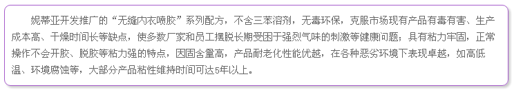 熱門關鍵詞: 環保噴膠 妮蒂亞系列 定型噴膠 凈味噴膠 阻燃型噴膠 箱包相冊膠